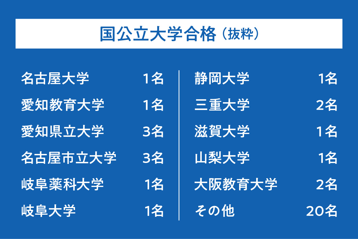 サポートプログラムで国公立大学や難関大学への合格実績多数。