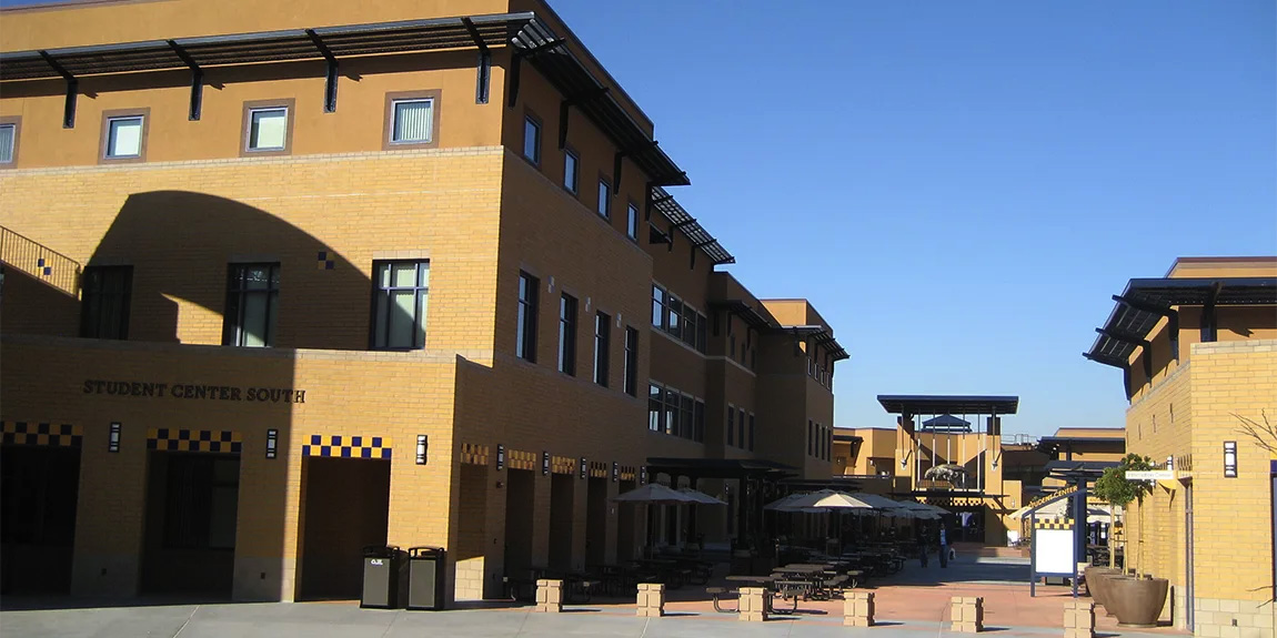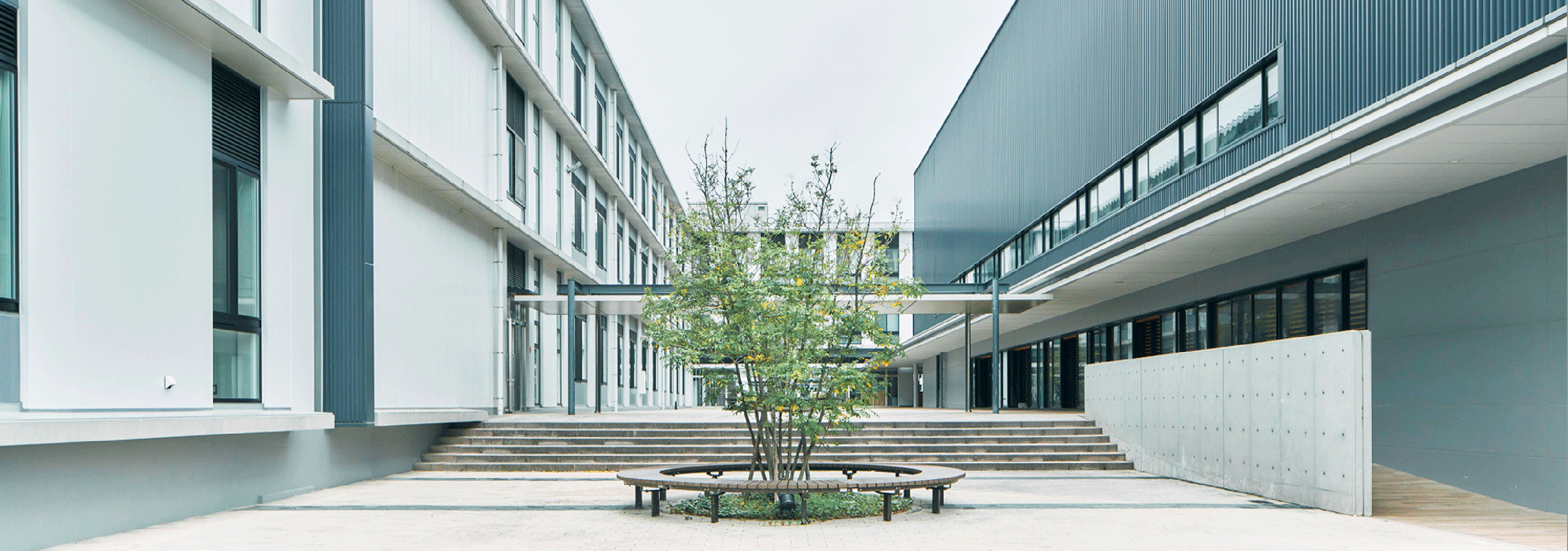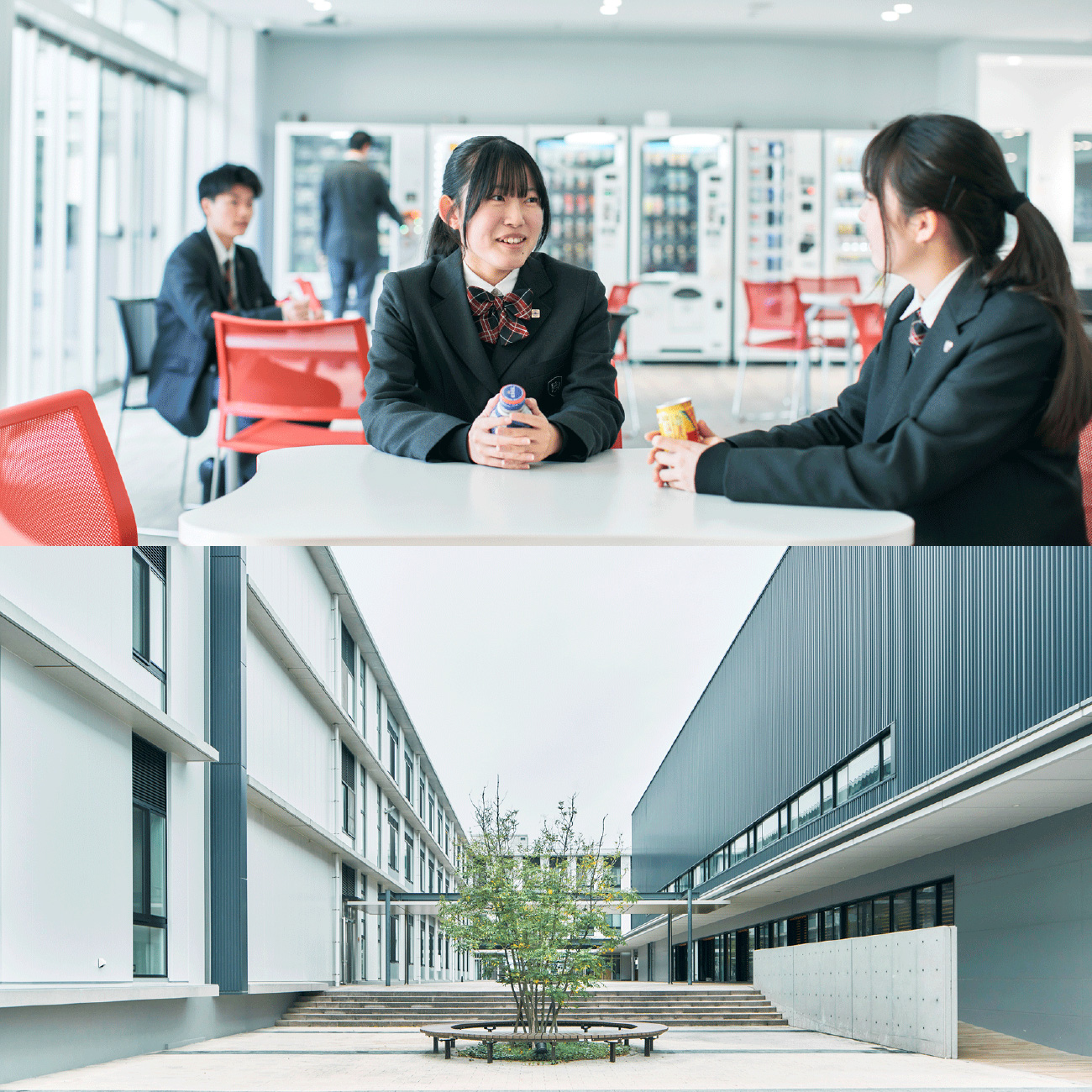 教職員と生徒が自然に行きかう開放的なセンターコートが