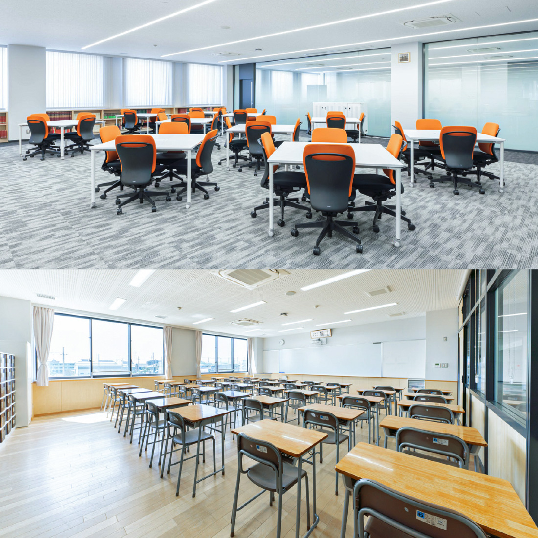 プロジェクターを完備しICT教育に対応した教室や、図書館と一体となったアクティブラーニングのためのメディアルームなど、学びの設備が充実しています。
