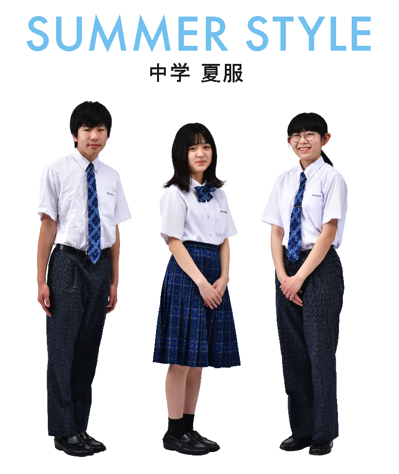 夏にはスラックスの場合は半袖カッターシャツ、スカートの場合はオーバーブラウスとなります。
